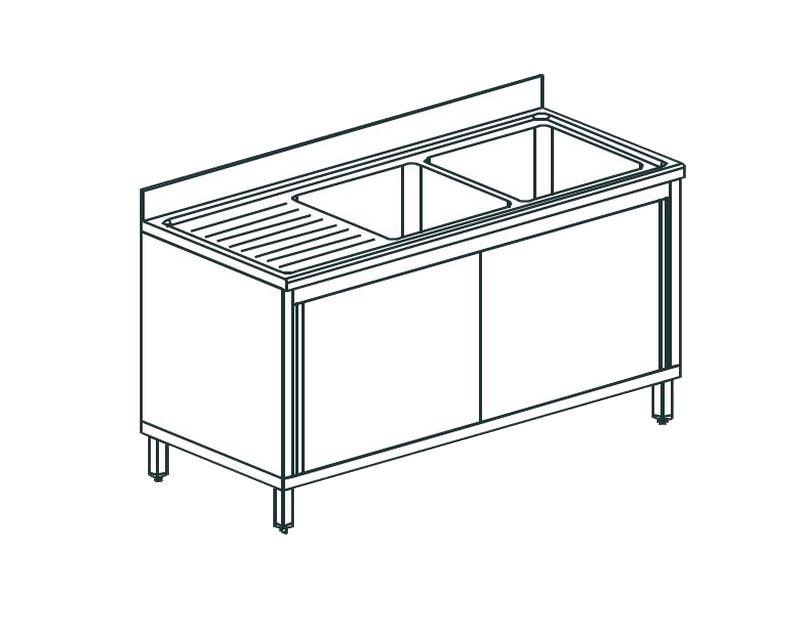 1800х600х900 мм, 2 ванны 500х400 мм, сушка слева, двери-купе, нерж сталь AISI 304